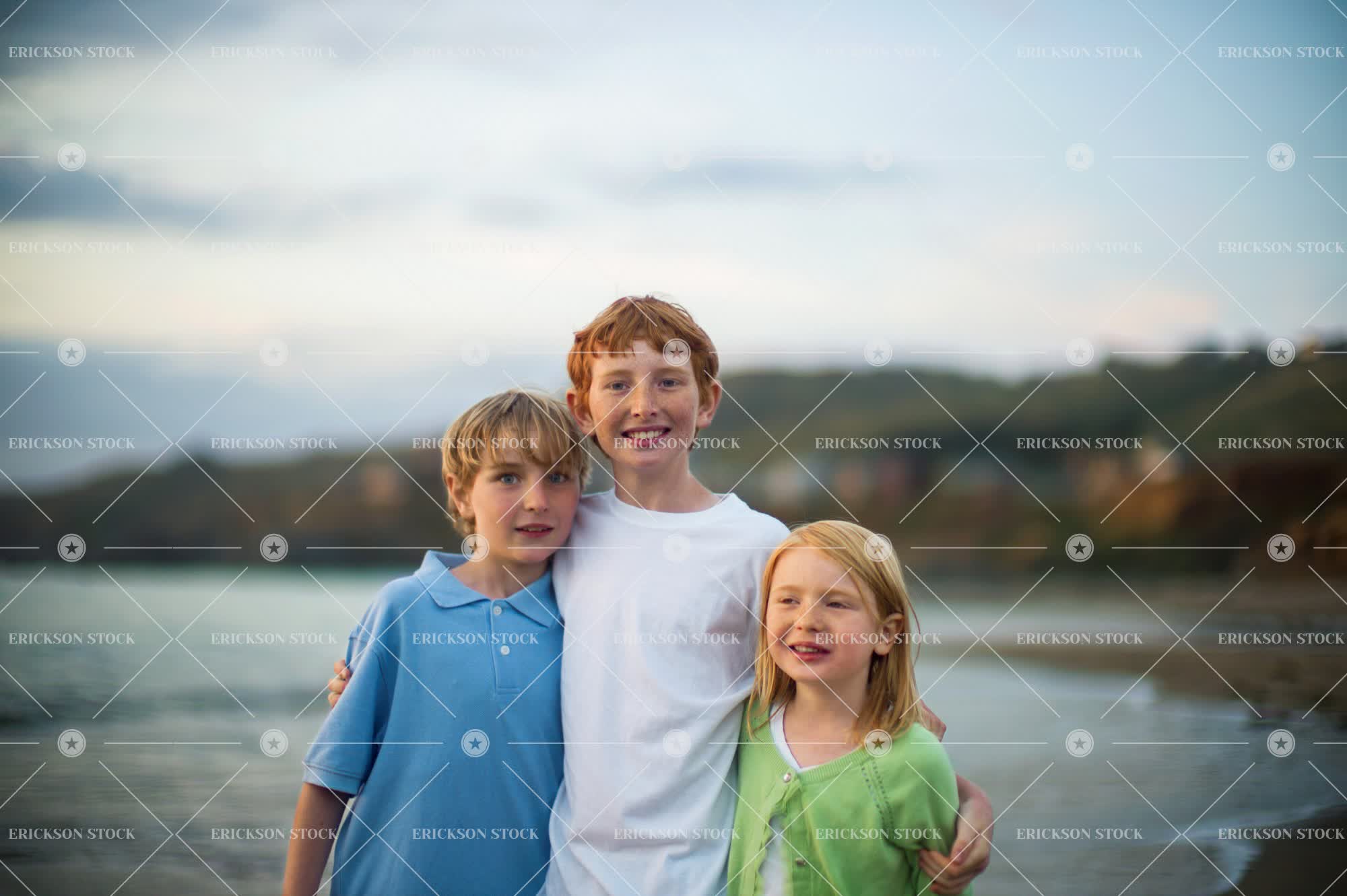 Tags affectionate, arm around, beach, blond, bond, boy, brother, cardigan, casual, casual clothes, caucasian, cheerful, child, coast, day, delight, elementary age, embracing, enjoyment, Eye contact, family, female, freckle, freckled, friend, friends, Fun, ginger, girl, girls, half length, happiness, happy, having fun, holiday, holidays, horizontal, joy, joyful, kid, kids, leisure, leisure activities, leisure activity, look at camera, looking at camera, male, outdoor, outdoors, outside, people, person, polo shirt, portrait, Portraits, preteen, recreation, recreational pursuit, recreational pursuits, red hair, redhead, redheaded, seashore, seaside, selective focus, shore, shoreline, shores, sibling, siblings, sister, sisters, smile, smiling, stand, standing, stands, sweater, t-shirt, t-shirts, tee shirt, tee shirts, titian, together, togetherness, towhead, tween, Vacation, vacations, waist up, weekend activities, weekend activity