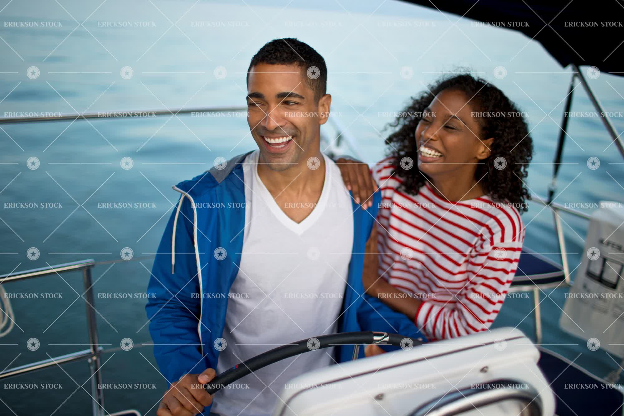 Tags adult, african american, boat, bow, boyfriend, brunette, casual clothes, cheerful, coast, couple, curl, day, delight, enjoyment, female, Fun, girlfriend, girlfriends, half length, hand on shoulder, hands on shoulders, happiness, happy, having fun, helm, heterosexual, heterosexual couple, heterosexual couples, hold, holding, holds, holiday, holidays, horizontal, jersey, joy, joyful, leisure, leisure activities, leisure activity, looking at camera, male, man, mid adult, nautical, nautical vessel, nautical vessels, ocean, oceans, one person, outdoor, outdoors, outside, partner, people, person, portrait, recreation, recreational pursuit, recreational pursuits, relationship, relationships, ringlets, sail boat, sail boats, Sailboat, sailboats, sailing, sea, seaboard, seacoast, seafront, seas, seashore, seaside, selective focus, shore, shoreline, shores, Side view, sitting, smile, smiling, stand, standing, stands, steering wheel, stripe, striped, stripes, stripy, Summer, teenager, transport, Transportation, travel, two people, Vacation, vacations, waist up, water, waterfront, waterfronts, waterside, weekend, weekend activities, weekend activity, windbreaker, woman, yacht, yachts, young adult
