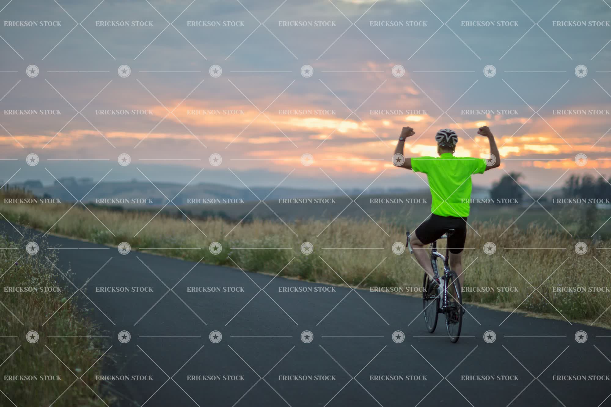 Tags achievement, active, adult, arm raised, back, back view, bicycle helmet, bicycle shorts, bike, caucasian, copy space, country, country road, countryside, day, dusk, evening, exercise, exercises, exercising, female, fitness, flexing, flexing muscles, full length, hand raised, hands raised, happy, health, healthy, healthy life, healthy lifestyle, healthy living, helmet, helmets, horizontal, jersey, leisure, leisure activities, leisure activity, lifestyle, lifestyles, male, man, mature adult, mid adult, negative space, one person, outdoor, outdoors, outside, people, person, rear, rear view, ride, rides, riding, road, roads, rural, rural road, rural roads, safety helmet, safety helmets, selective focus, senior adult, Shorts, showing off, sit, sitting, sport, Sports, sports clothes, sports clothing, sportswear, strength, Strong, success, successful, sundown, sunset, transport, Transportation, twilight, vitality, weekend, well-being, wellbeing, wellness, woman