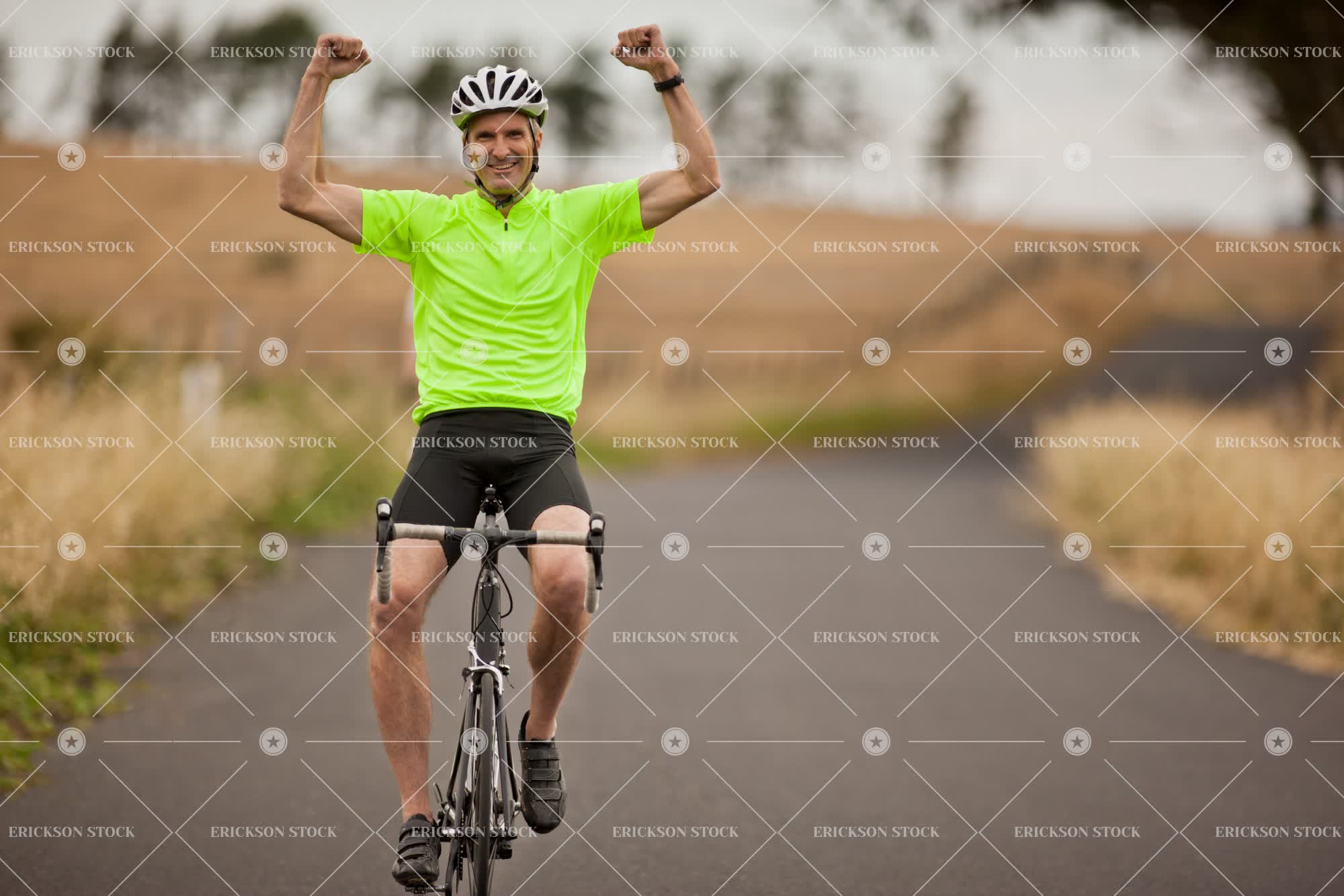 Tags achievement, active, adult, arm raised, bicycle helmet, bicycle shorts, bike, caucasian, cheerful, country, country road, countryside, day, delight, dusk, enjoyment, exercise, exercises, exercising, Eye contact, female, fitness, flexing, flexing muscles, full length, Fun, gray hair, hand raised, hands raised, happiness, happy, having fun, health, healthy, healthy life, healthy lifestyle, healthy living, helmet, helmets, horizontal, jersey, joy, joyful, leisure, leisure activities, leisure activity, lifestyle, lifestyles, look at camera, looking at camera, male, man, mature adult, mid adult, one person, outdoor, outdoors, outside, people, person, portrait, Portraits, recreation, recreational pursuit, recreational pursuits, ride, rides, riding, road, roads, rural, rural road, rural roads, safety helmet, safety helmets, selective focus, senior adult, Shorts, showing off, sit, sitting, smile, smiling, sport, Sports, sports clothes, sports clothing, sportswear, strength, Strong, success, successful, transport, Transportation, twilight, vitality, weekend, wellbeing, wellness, woman
