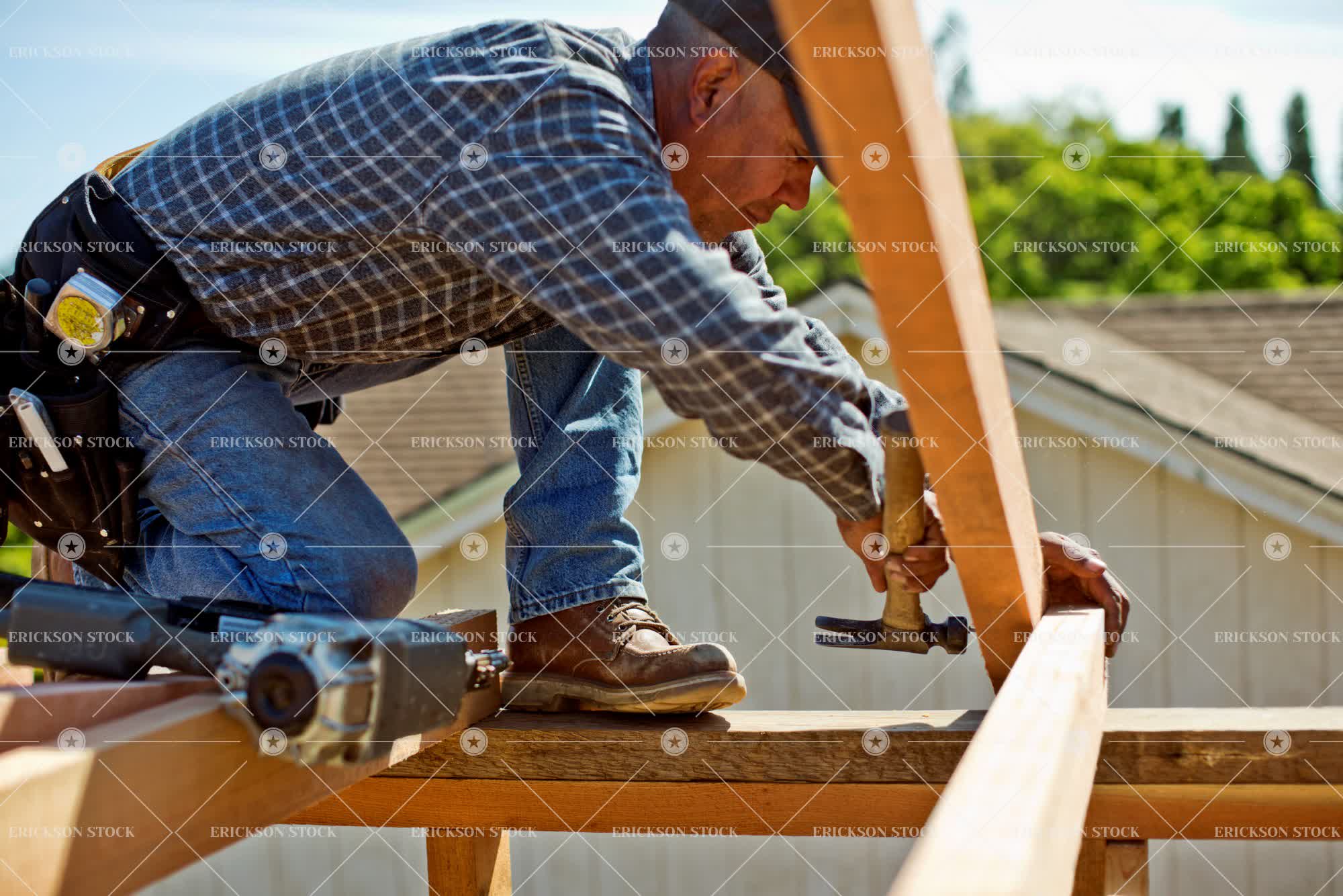 Tags adult, baseball cap, beam, blue collar, blue jeans, boots, building, cable, cap, carpenter, casual clothes, caucasian, check, checkered, climb, concentrate, construction, construction site, construction worker, day, denim, develop, do it yourself, drawing, drill, electric cable, electric cables, electrical cable, electrical cables, film, fix, fixes, fixing, flannel shirt, footage, frame, framer, frames, framing, full length, hammer, hammering, hand camera, handheld, hat, hats, hold, holding, holds, home improvement, horizontal, house, incomplete, jeans, kneeling, laborer, latin american, look down, looking down, low angle, low angle view, male, man, mature adult, measure, measurement, measurements, measures, measuring, mend, mending, mends, mid adult, nail, nail gun, nailing, nails, one person, outdoor, outdoors, outside, pencil, pencils, people, person, plaid, plaid shirt, rafter, rebuild, rebuilding, rebuilds, renovate, renovates, renovating, repair, repairing, repairs, roof, roofs, rooftop, rooftops, selective focus, shirt, shirts, Side view, site, tape measure, tool, tool belt, tool belts, tools, unfinished, wood, wooden, work, work boots, worker, working