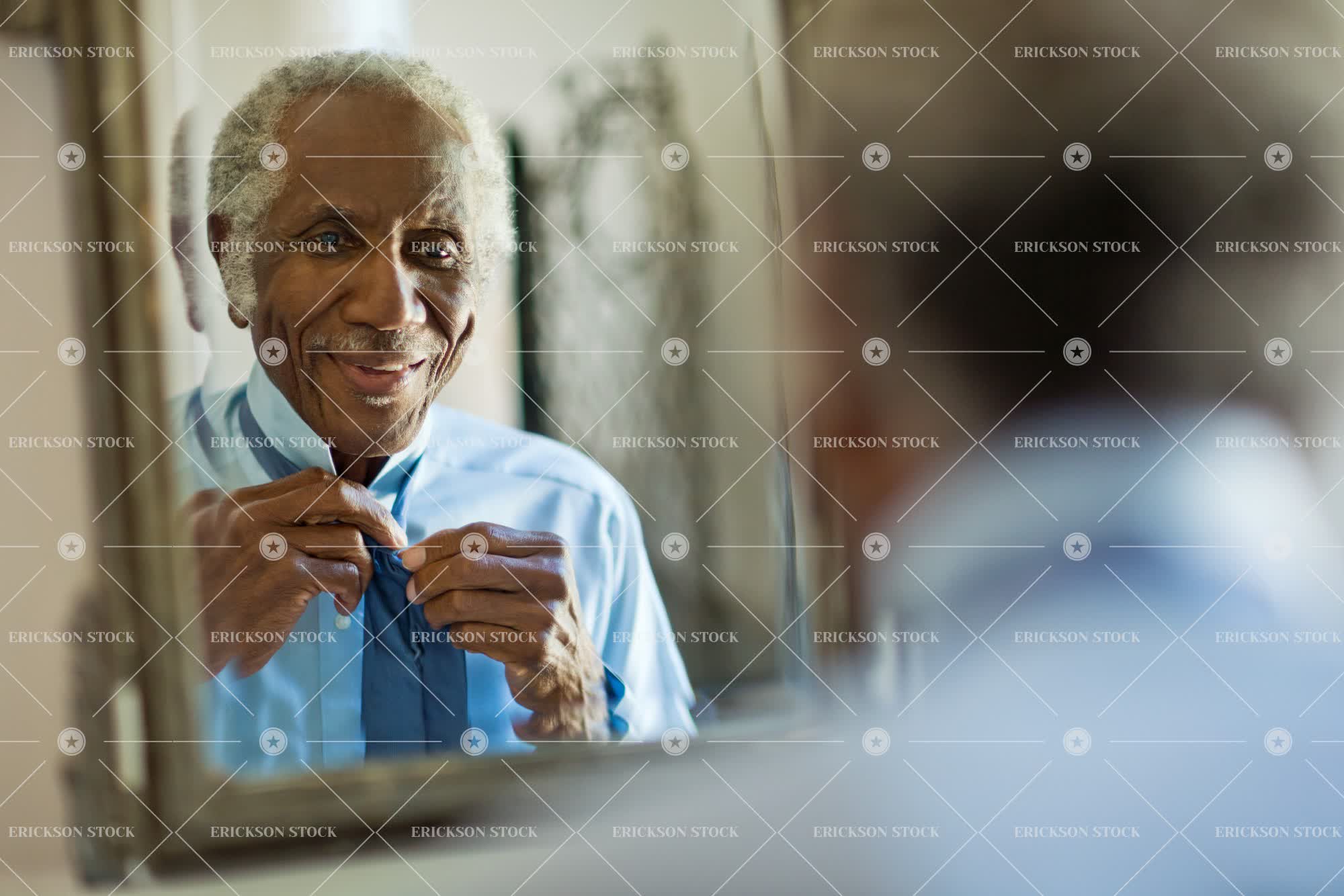Tags adjust, adult, african american, bedroom, brown eyes, button down shirt, cheerful, delight, dress, dressing room, elderly, elderly man, enjoyment, facial hair, getting dressed, getting ready, gray hair, grey hair, half length, happiness, happy, head, head & shoulders, head and shoulders, head shot, headshot, heterosexual, home, home interior, home interiors, homes, horizontal, house, house interior, house interiors, houses, Husband, indoor, indoors, inside, interior, interiors, joy, joyful, looking at mirror, looking in mirror, male, man, mature adult, mid adult, mirror, moustache, mustache, Necktie, one person, people, person, putting on tie, real time, Reflection, selective focus, senior adult, shirt, short hair, shoulders, smile, smiling, spouse, tie, top, tops, tying tie, waist up, well-dressed, window, windows