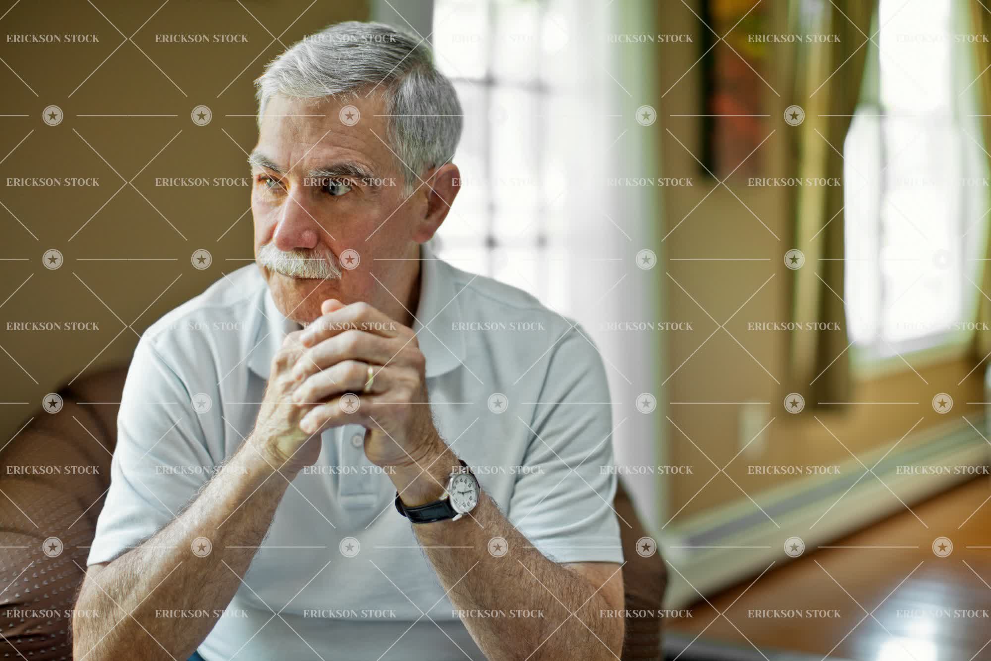 Tags adult, alone, casual, caucasian, chair, contemplate, daydream, denim, despair, gray hair, home, horizontal, indoor, jeans, Loneliness, lonely, male, man, mental health, mental illness, moustache, mustache, one person, pensive, person, polo shirt, portrait, psychological, ruminating, sad, sadness, selective focus, senior adult, sitting, solitary, solitude, t-shirt, thinking, thoughtful, troubled, unhappiness, unhappy, worried