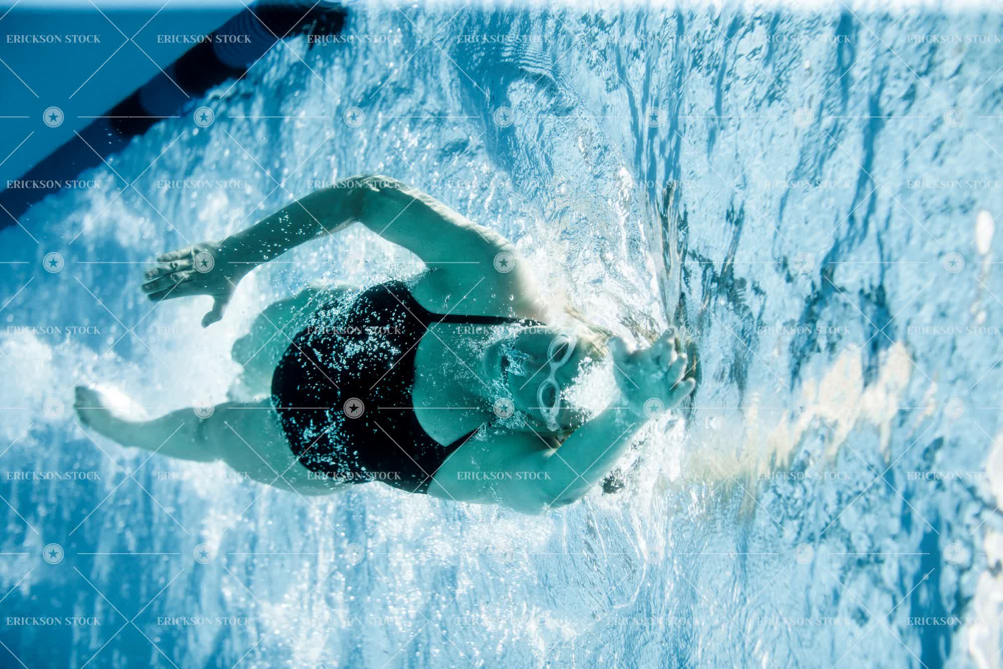 Tags active, adult, athlete, athletic, bathing suit, blond, caucasian, exercise, exercising, female, fit, fitness, freestyle, front crawl, full length, goggles, health, healthy, horizontal, leisure, low angle, mature adult, mid adult, one person, outdoor, person, pool, recreation, selective focus, stroke, swim, swimmer, swimmers, swimming, swimming pool, swimsuit, swimwear, underwater, water, woman