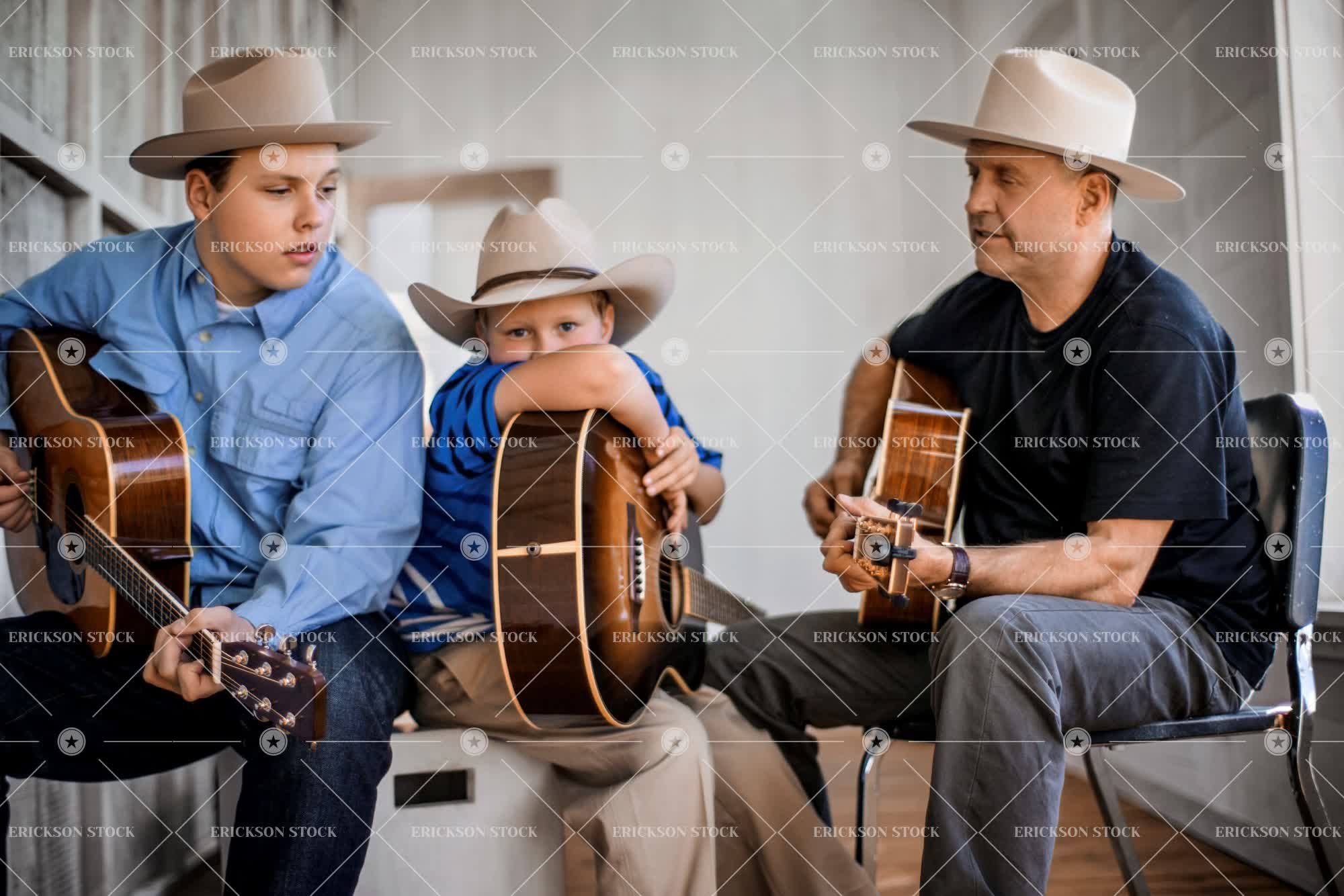 Tags acoustic guitar, adult, american, americana, bond, boy, brother, caucasian, chair, child, cowboy hat, crate, elementary age, family, father, Guitar, guitar player, Guitarist, happiness, happy, hat, home, horizontal, house, indoor, instrument, male, man, mature adult, Music, Musical instrument, Musician, parent, people, playing guitar, selective focus, sibling, sitting, son, stetson, teenager, together, togetherness, western