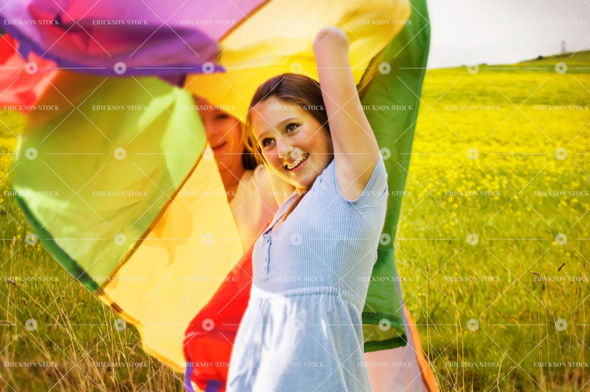 Tags carefree, caucasian, child, cloth, country, countryside, day, fabric, fabrics, female, field, fields, flower, flowers, friend, friends, friendship, girl, girls, half length, happiness, happy, head, head & shoulders, head and shoulders, head shot, headshot, horizontal, inside, inside of, kid, kids, material, materials, Meadow, meadows, multi-colored, multi-coloured, outdoor, outdoors, outside, person, play, Playing, pre-adolescent, pre-adolescents, Pre-teen, pre-teens, preteen, preteens, rural, selective focus, shoulders, smile, smiling, teenage girl, teenager, textile, textiles, together, togetherness, tween, two people, waist up, wildflower, wildflowers