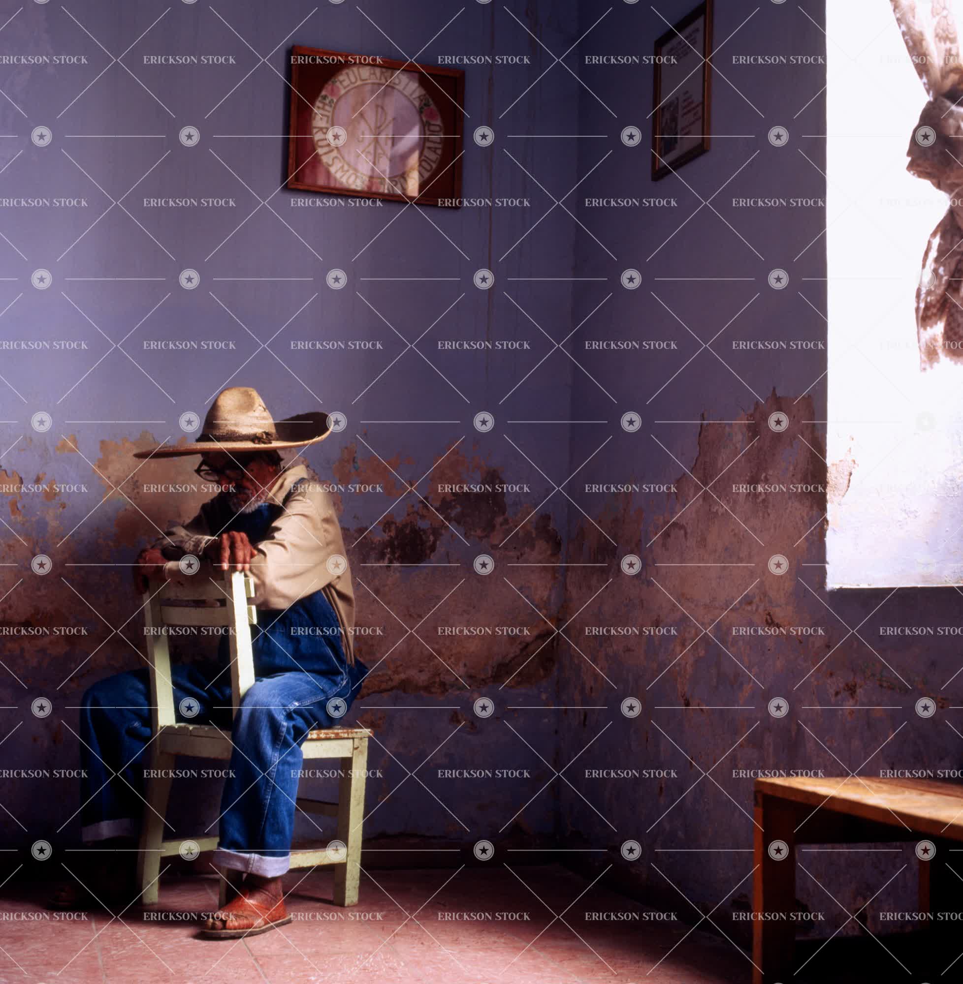 Tags adult, alone, building, calm, chair, culture, day, dwelling, dwellings, eyeglasses, fashion, full length, glasses, hat, hats, home, homes, house, household, households, houses, housing, indoor, indoors, inside, isolated, latin american, lone, look down, looking down, male, man, mature adult, mid adult, one person, Overalls, pensive, people, person, portrait, Portraits, profile, residence, residences, residential structure, residential structures, seat, seats, senior adult, serious, seriously, Side view, sit, sitting, solitary, sombrero, sombreros, spectacles, stern, Straw hat, straw hats, thinking, thoughtful, vertical, viejo