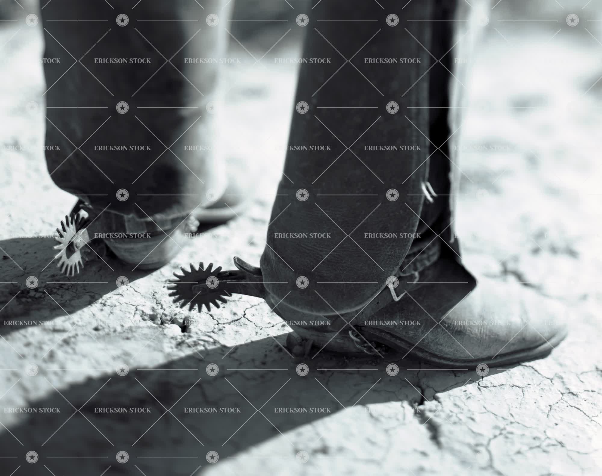 Tags adult, american, americana, animal, bit, black and white, blue jeans, boots, caucasian, clay, copy space, copy space bottom, cowboy, cowboy boots, crack, cracked earth, cropped, day, desert, dirt, dry, equestrian, equestrians, equipment, feet, foot, high angle, high angle view, horizontal, horse, horseman, horsemen, jeans, job, jobs, leather, leg, legs, low section, machismo, macho, male, man, monochrome, negative space, negative space bottom, one person, out west, outdoor, outdoors, outside, part of, people, person, ranch, rancher, ranches, riders, riding rider, saddle, saddles, selective focus, spat, spats, spur, spurs, stand, standing, straw, the wild west, traditional clothes, traditional clothing, Trail, trails, training, unrecognizable people, unrecognizable person, vocation, vocations, west, western, wild west