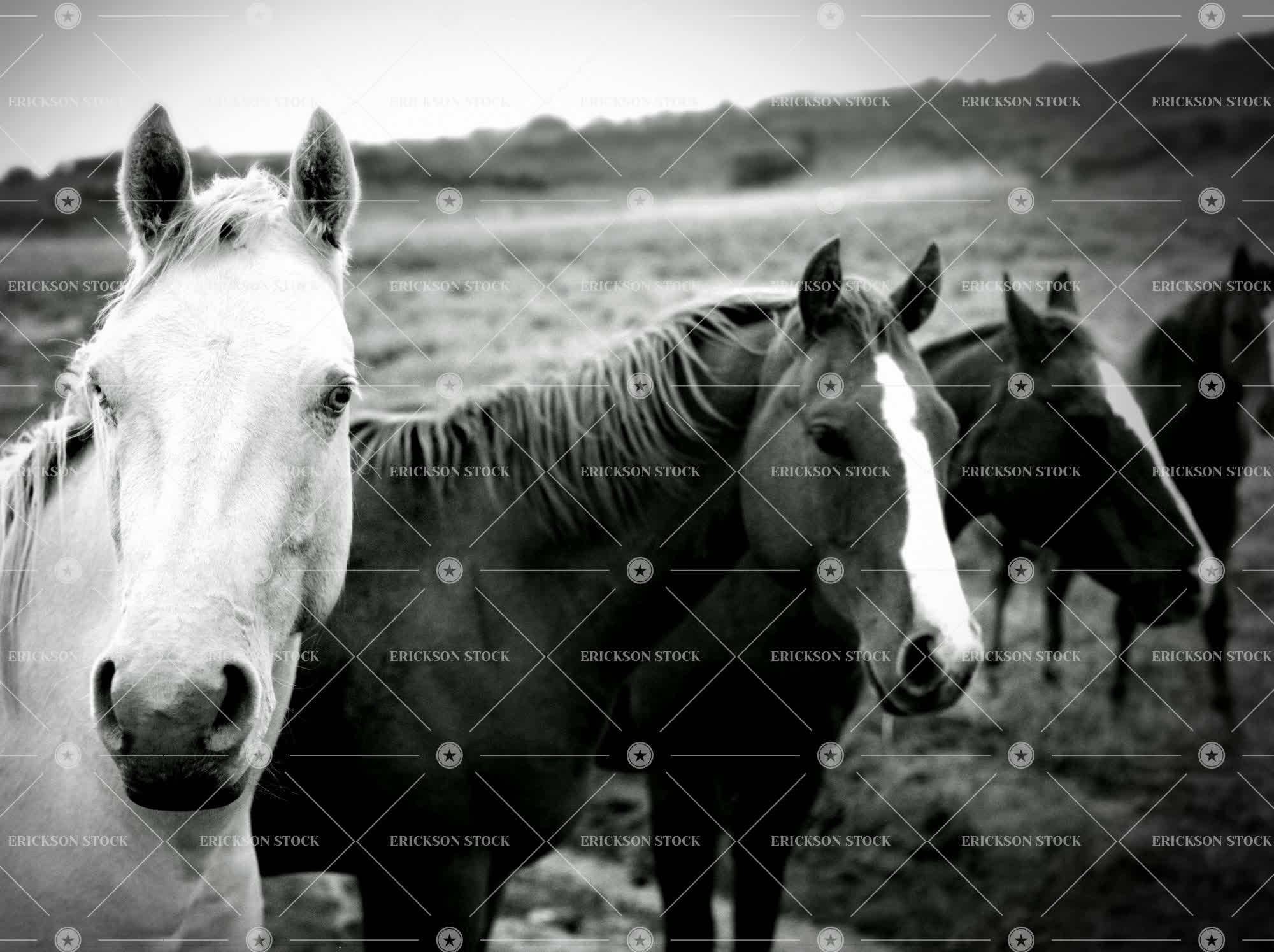 Tags animal, black and white, day, equines, field, fields, Grassland, grasslands, group, herbivore, herbivores, herbivorous, horizontal, horse, horses, Mammal, mammals, Meadow, meadows, monochrome, nobody, outdoor, outdoors, outside, paddock, paddocks, pasture, pastures, person, selective focus, small group of people, wild west