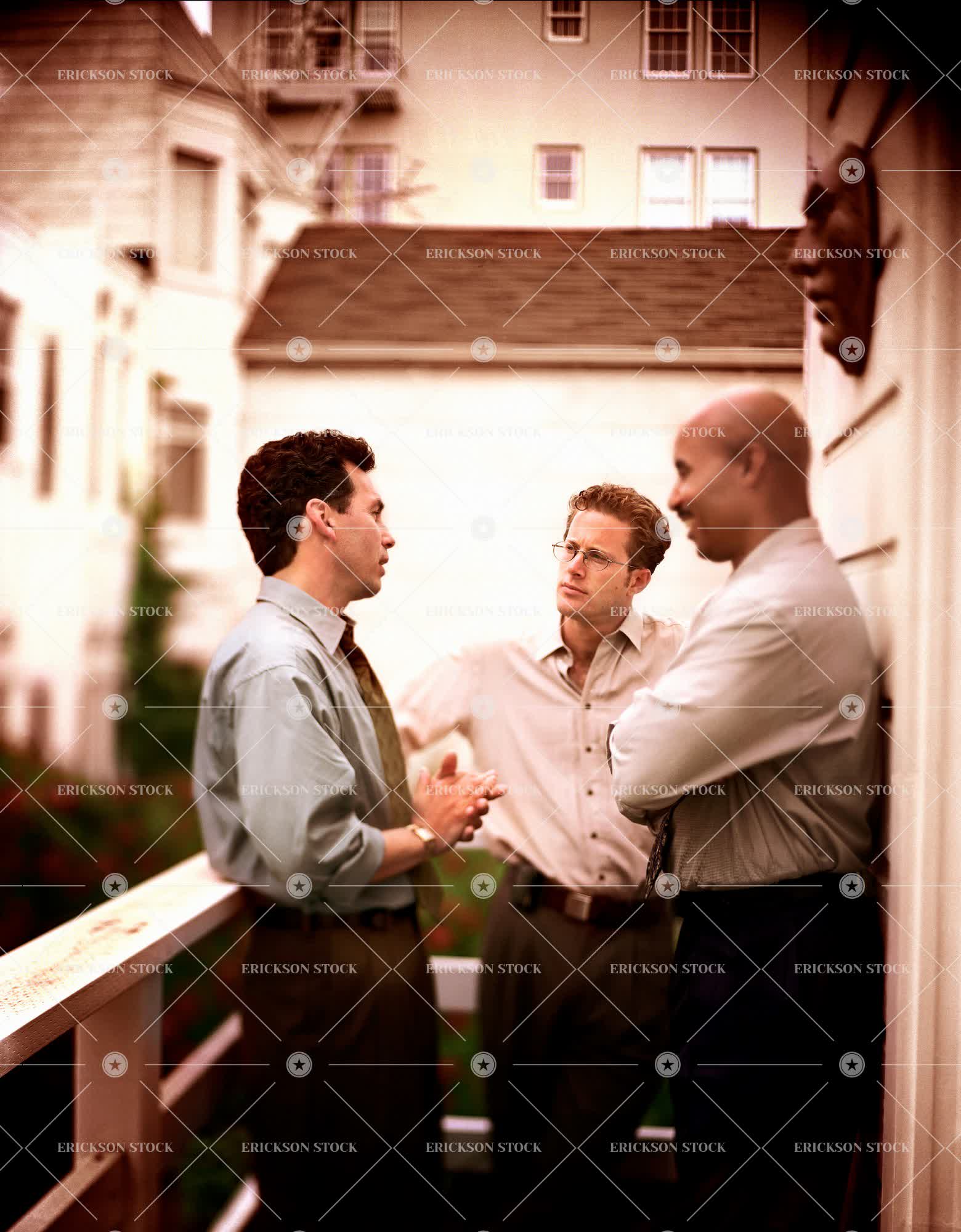 Tags adult, african american, associate, balcony, bond, brainstorming, business, business man, caucasian, colleague, companion, conference, conversation, day, dwelling, dwellings, enterprise, enterprises, executive, exterior, exteriors, fellow, fellows, friend, friendliness, friendly, friends, friendship, friendships, front view, front views, gather, gathered, gathering, gatherings, gathers, group, groups, guy, guys, hear, heard, hearing, hears, home, homes, house, housed, houses, housing, listen, listened, listener, listeners, listening, listens, lodge, lodged, lodges, lodging, lodgings, male, man, meet, meeting, meetings, meets, met, mid adult, of african descent, only males, only men, outdoor, outdoors, outside, partner, people, person, persons, profile, profiles, real estate, relationship, relationships, residence, residences, Side view, side views, smile, smiled, smiles, smiling, standing, stood, three quarter length, together, togetherness, vertical, vertically, verticals, western european, white collar worker, white collar workers