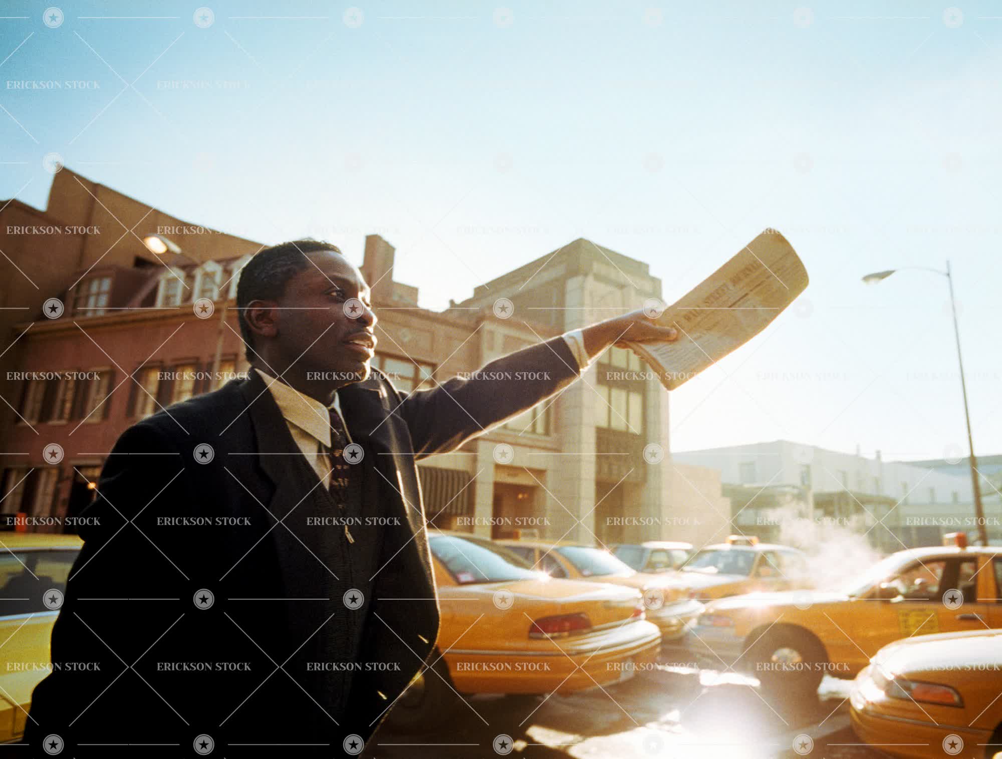 Tags adult, african american, anticipation, business, business man, business travel, car, city, copy space, day, executive, executives, hail, hailing, hails, hold, holding, hope, hopeful, hopefully, hoping, horizontal, male, man, mature adult, mid adult, negative space, news, newspaper, newspapers, one person, outdoor, outdoors, outside, paper, people, person, road, roads, selective focus, solar flare, street, street scene, street scenes, streets, streetscape, streetscapes, sun, sunshine, taxi, taxicab, taxicabs, taxis, three quarter length, transport, Transportation, travel, urban, vehicle, vehicles, Watch, watching, wave, waves, Waving, well-dressed, yellow cab, yellow cabs, yellow taxi, yellow taxis