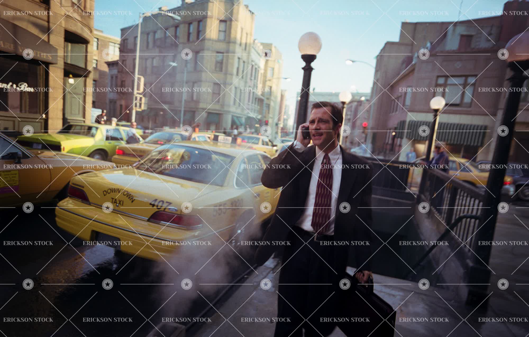 Tags acknowledge, adult, answer, background people, briefcase, building, business, business man, call, caucasian, cell phone, city, cityscape, communicate, commute, conversation, curb, day, edifice, edifices, elevated view, enterprise, enterprises, executive, exterior, exteriors, fellow, fellows, fender, front view, front views, gutter, guy, guys, hack, hacks, high angle, high angle view, horizontal, horizontally, horizontals, hustle, late, lifestyle, lifestyles, make it happen, male, man, mass transit, metropolitan, mid adult, mobile, mobile phone, mobile phones, mobiles, on the move, one person, only males, only men, outdoor, outdoors, outside, overpopulation, overtake, overtaken, overtakes, overtaking, passed, passing, people, person, persons, phone, phoned, phones, phoning, pollute, polluted, pollutes, pollution, public, public transit, publicly, publics, rapid transit system, respond, responded, responding, responds, response, responses, road, roads, roadway, roadways, rush hour, salesman, schedule, sell, sidewalk, skyline, skylines, smile, smiled, smiles, smiling, smog, standing, steam, stepped, stepping, stood, street, streets, stride, strides, striding, strode, structure, structures, subway, subways, sunlight, sunny, sunshine, sunshines, taxi, taxicab, taxicabs, taxis, Telephone, telephoned, telephones, Telephoning, three quarter length, traffic, transit, transport, Transportation, transported, transporting, transports, travel, traveled, traveling, travelled, travelling, travels, trip, trips, underground, urban, vehicle, vehicles, walk, walked, Walking, walks, western european, workforce